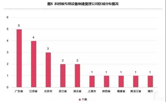 从各省(直辖市、自治区)来看,广东、江苏、北京、浙江和湖北拥有的科创板智能制造受理企业数量排名前五,企业数量均超过2家;中西部地区陕西省和湖北省有分布,东北地区黑龙江省有分布,其余省份(直辖市、自治区)尚未有科创板智能制造受理企业。